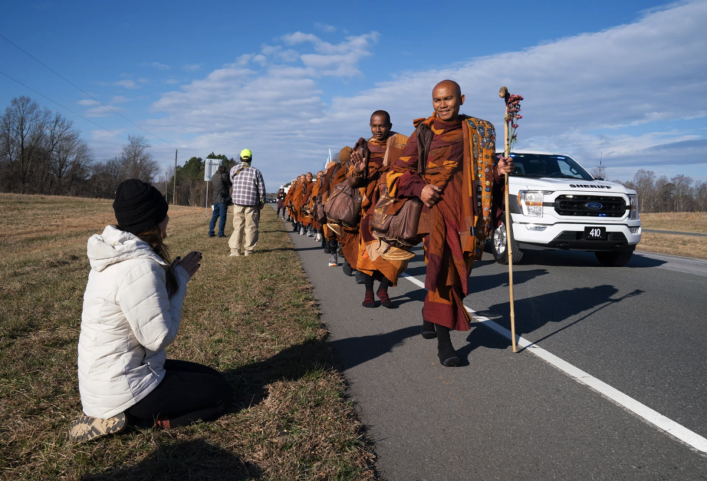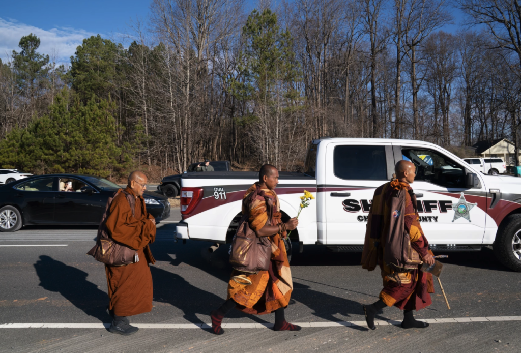 The monks hail from Dhammacetiya, a Vietnamese Buddhist organization in Fort Worth, Texas. Their walk began on Oct. 26 there, and they plan to reach Washington, D.C., before Valentine's Day.