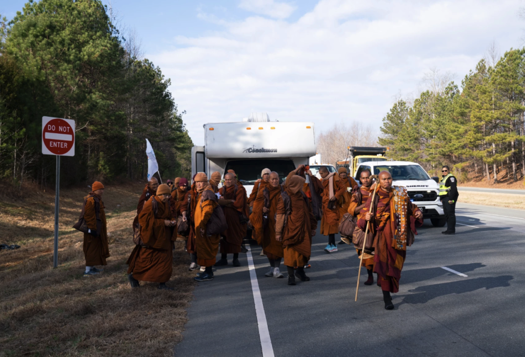 On Friday, the monks set out toward Apex where they stopped and participated in a ceremony with the town before heading east to Raleigh.