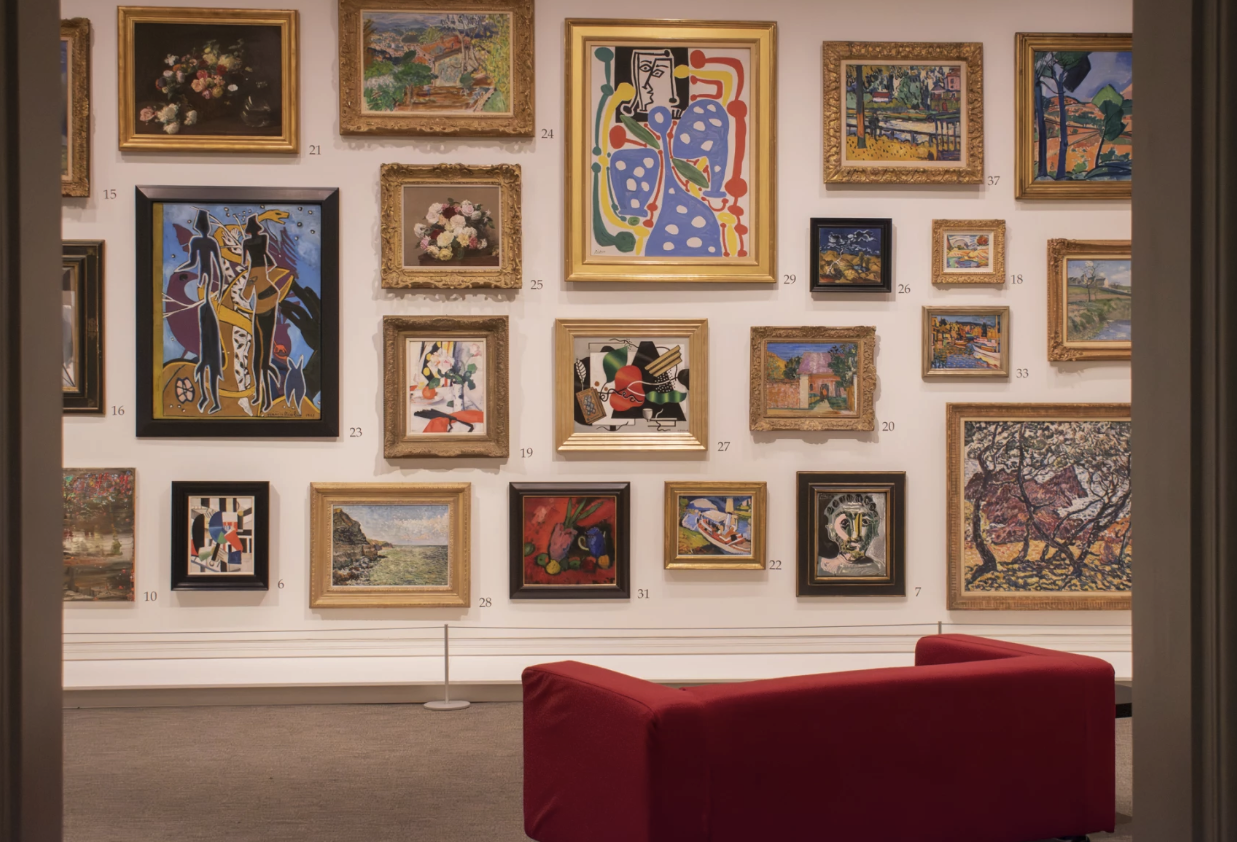 On the opposite side of the room, a magnetic reproduction of the gallery is available for visitors to make their own arrangements of the works of art.