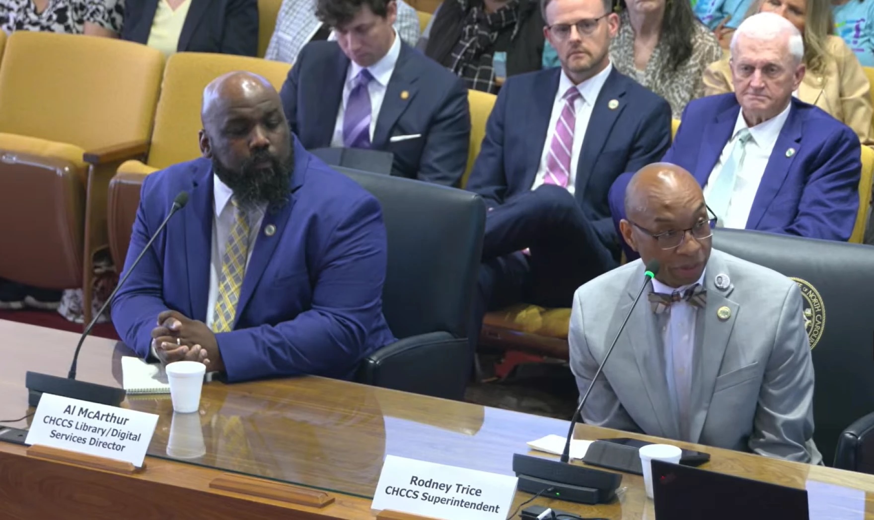 Representative Brenden Jones (R-Robeson) announced he was filing the new bill at the end of a hearing where lawmakers pressed Chapel Hill-Carrboro City Schools (CHCCS) administrators about books in their elementary school libraries.