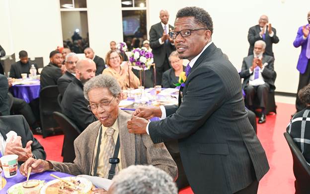 This year’s theme was “Impactful Service Through Intentional Friendship.” The activities got under way on Veterans Day, November 11, with a breakfast at Golden Corral to honor local veterans. On November 13, it was standing room only at the Achievement Week Awards Banquet at the Mt. Olive Baptist Church Dr. C.E. Gray Sr. Fellowship Hall. Later in the week, Psi Phi brothers volunteered at Samaritan Ministries soup kitchen and homeless shelter, and the week ended with a church service at Union Baptist Church.