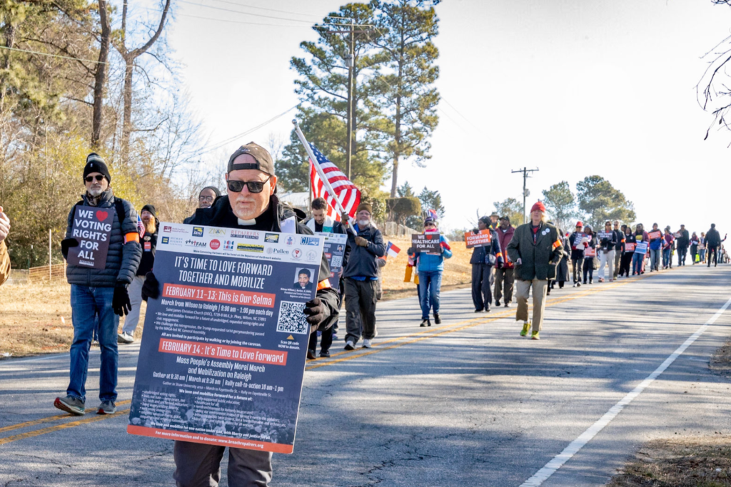 The march and assembly brought together a multiracial, multifaith coalition of faith leaders, labor organizers, and impacted people, supported by the North Carolina Poor People’s Campaign, Institute for Policy Studies, St. James Christian Church (Disciples of Christ), North Carolina Council of Churches, Union of Southern Service Workers, Indivisible, Second Chance Alliance, Human Rights Campaign, SEIU, Public Schools First NC, and the Save America Movement, which provided daily coverage along the route.