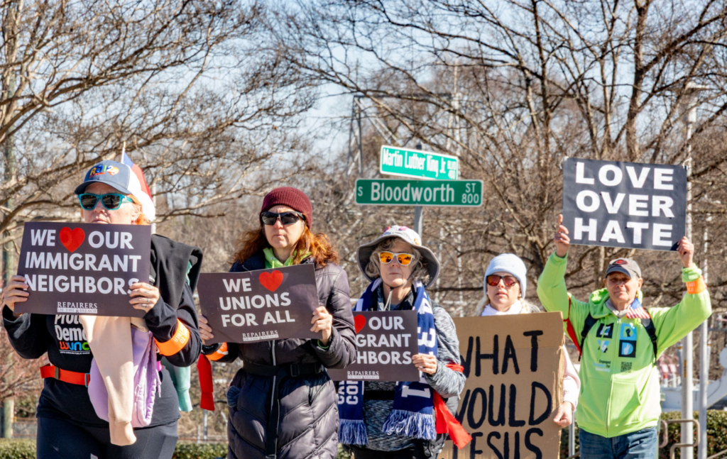 Speakers included Keith Ballard, the Venerable Bhikkhu Bodhi, Suvya Carroll, the Rev. Frank Dew, Rabbi Lucy Diner, Judge Toby Fitch, Dennis Gaddy, Mary Hooks, Bishop George Jackson, Danyelle Holmes, Sloan Meek, Ashley Mitchell, David Neal, Alma Tinoco Ruiz, Ismael Ruiz Millan, Sangria Noble, the Rev. Della Owens-Barber, Nancy Petty, Kathleen Roblez, Brandon Ruffin, Steve Schmidt, Mona Singh, Greg Singleton, Wesley Stokes, Caitlin Swain, Imam Abdul Waheed, Wayne Wilhelmjo, Jonathan Wilson-Hartgrove, Bishop Sonya Williams, Clinton Wright, Bishop Darin Moore and Karen Ziegler.